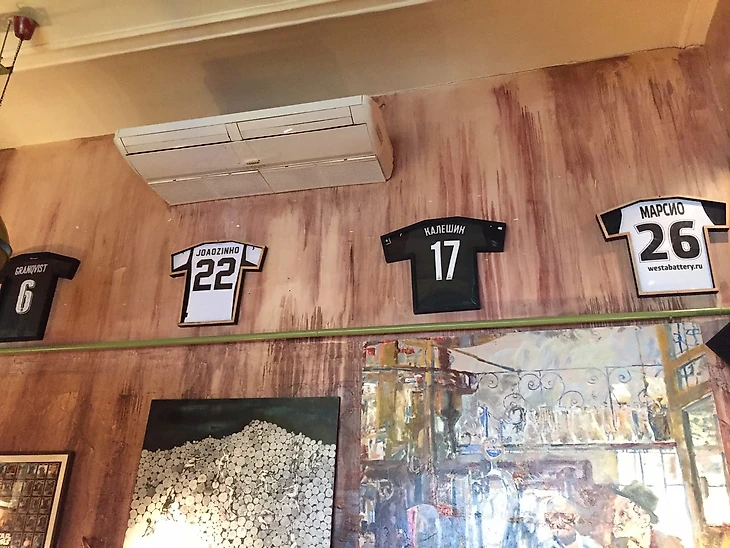 — Четыре сезона назад мы собрались за несколько дней до Нового года и по пьянке решили выбрать лучшего игрока уходящего года по принципу «душа и сердце клуба». Теперь мы каждый год проводим тайное голосование, а майка победителя навечно остается в нашем баре. Первым победил опорный полузащитник Марсио. Сейчас он уже закончил карьеру и вернулся в Португалию, но мы до сих пор с ним общаемся и всегда вспоминаем его с огромной любовью. Это феноменальный игрок без скорости и других преимуществ, но с огромным желанием быть лучшим на поле. В первые два сезона премьер-лиги Марсио дал клубу очень многое, а потом были Жоаозиньо, Калешин и Гранквист. После того, как выбрали футболиста, мы звоним в клуб и говорим, что пора везти его футболку. Сначала была идея, чтобы игроки приходили сюда и фотографировались, но потом начались январские праздники и всем было не до этого.