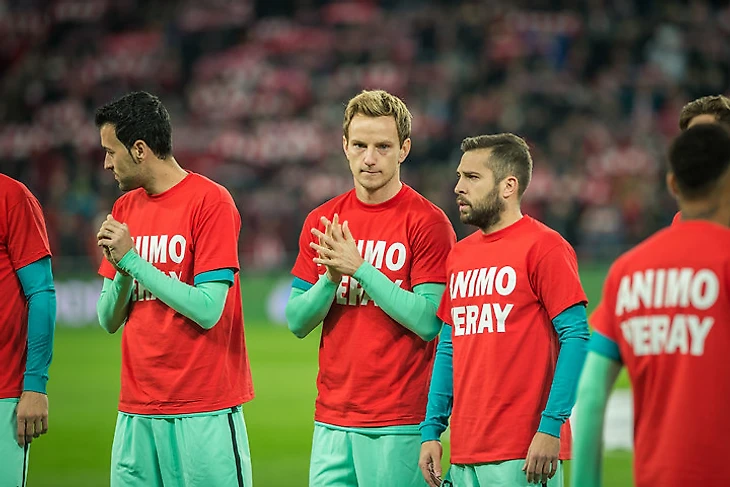 На фотографии вместе с одноклубниками Йерай стоит по центру, а у себя в инстаграме он назвал их «сумасшедшей семьей».