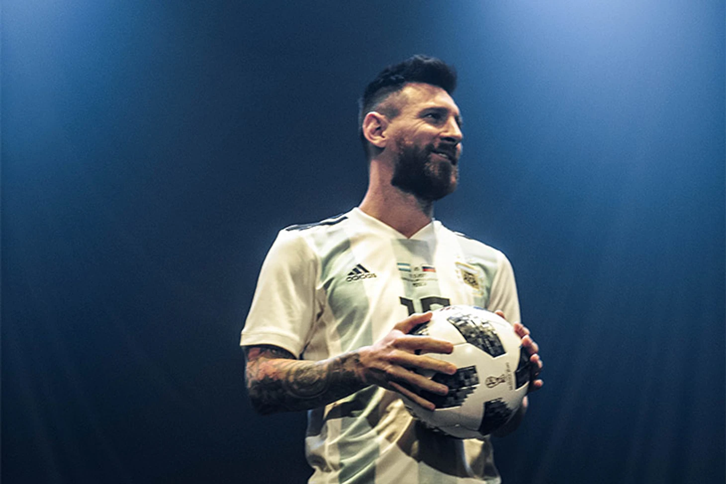 В четверг Лео приехал в центр дизайна Artplay и наконец вышел к людям – чтобы представить мяч Telstar 18 и новую пикселизированную форму сборной Аргентины.