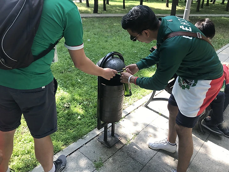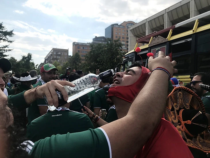 Мексиканцы много выпивали и поднимали вверх банки и стеклянные бутылки с текилой и другим крепким напитком мескалем (парни, спасибо). Они веселились так, как многие из нас стесняются. Открывали пиво о железные мусорки прямо у стадиона, отхлебывали из бутылок, не закрытых пакетом; опрокидывали голову, открывали рот – друзья вливали туда алкоголь.