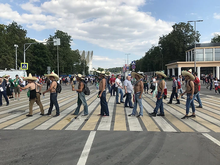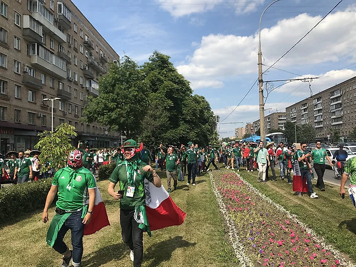 По пути к стадиону мексиканцы веселили русских. Увидели на балконе бородатого мужчину в очках – кричали ему «Юрген Клопп, Юрген Клопп». Фотографировались с продавщицами, стоявшими на входе в магазин. Проходили салон красоты, где все девушки вышли на улицу и снимали, – посвятили им песню: «Русская сестричка – теперь ты мексиканка» («Rusa hermana – ya eres mexicana»).