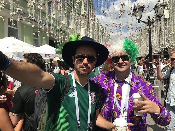 Стать одним из них совсем просто. Одна улыбка, слово на испанском или подарок в виде флажка/стикера/совместной фотографии – и ты уже свой. Поешь и выпиваешь вместе с ними, прыгаешь, носишь сомбреро. Прогрессивная мягкая сила от мексиканцев – учить национальным танцам русских прохожих. Группа болельщиков, как на групповом занятии аэробики, показывала движения под ритм мексиканской кумбии и просила повторять за ними.