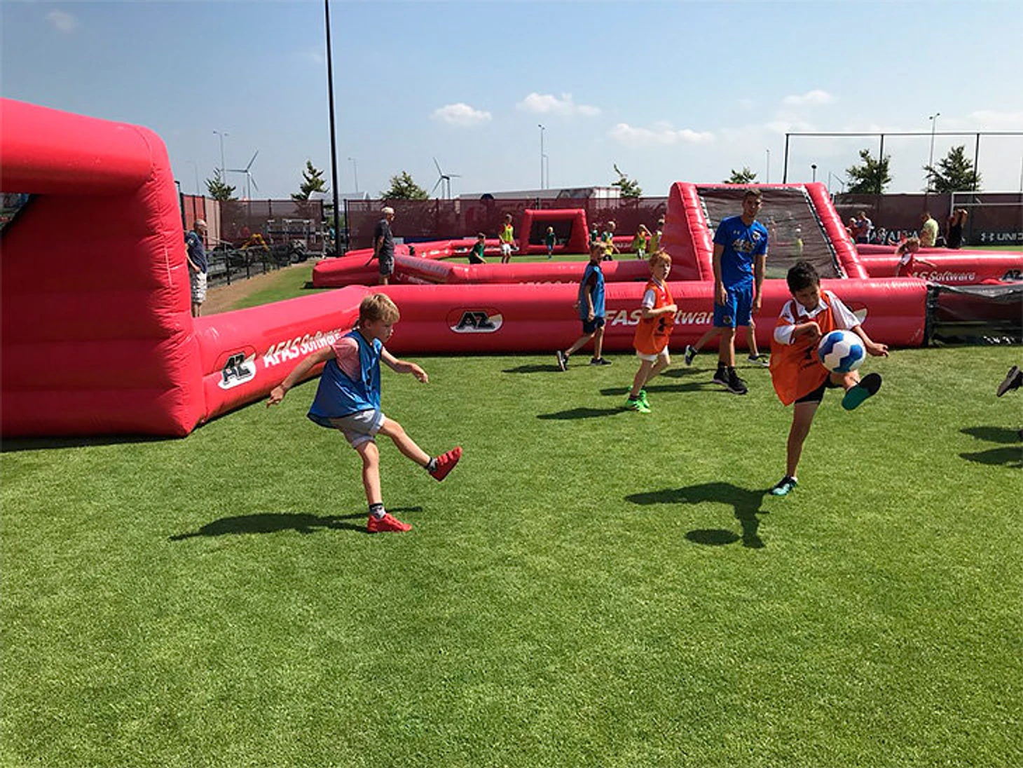 1. Футбол на поле с надувными бортами и воротами для детей.