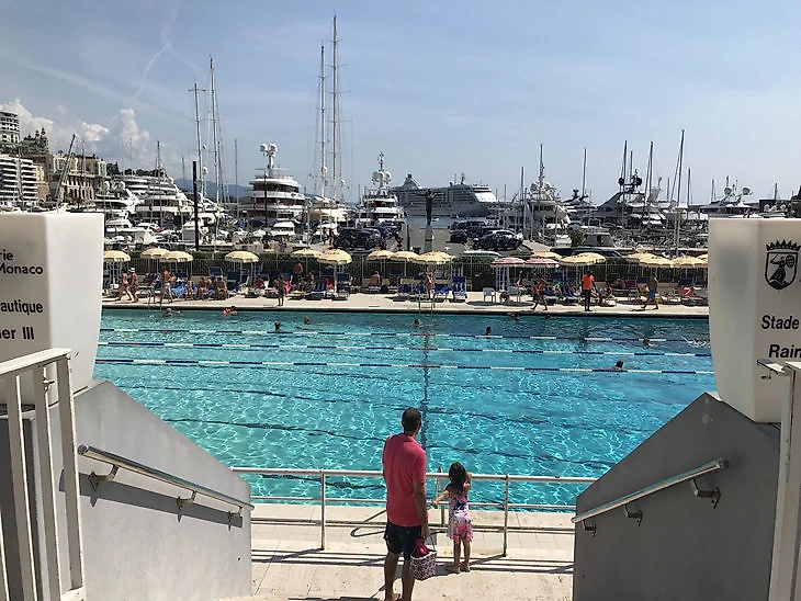 Лазурное море доступно для всех. Есть платная зона с лежаками и зонтиками, но никто не мешает прилечь на полотенце рядом, тем более в Монако не назойливый сыпучий песок, а светлая мелкая галька. Благодаря ей легко заходить в море, приятно лежать наполовину в воде, не надо вытряхивать песок из кроссовок. На пляже есть душ с пресной водой. Переодеваются в туалетах: на входе лежит блюдце, куда кладут монетку – благодарность за услугу. Можно и не класть – все же это обычный туалет, куда ты зашел на минуту переодеть плавки.