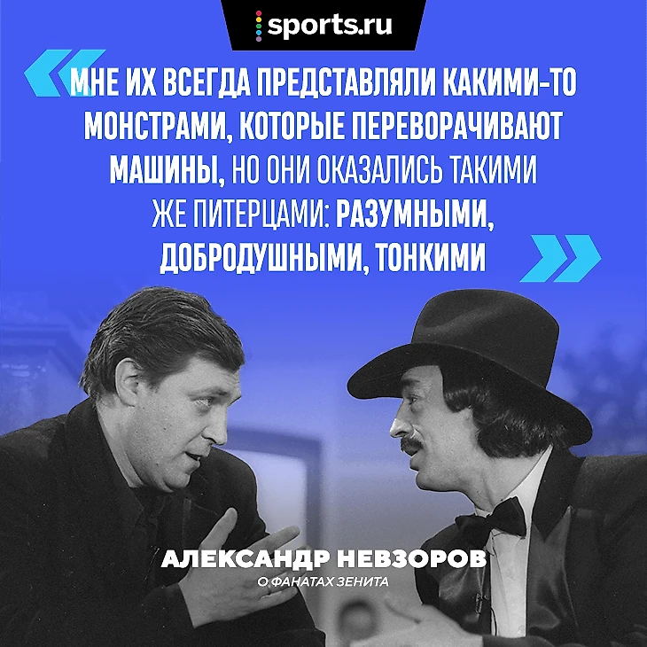 – Мы с ним прекрасно дружили и общались. В тех вопросах, когда со мной было невозможно договориться (Невзоров приезжал к Белому дому, привозил репортажи из горячих точек, в 1994-1998 годах был консультантом-аналитиком Бориса Березовского, о чем рассказал во «вДуде». Из-за мата законодательство РФ запрещает нам ставить прямую ссылку на интервью Дудя с Невзоровым, но вы легко его найдете по запросу «Дудь Невзоров». – Sports.ru), ко мне из администрации подсылали Мутко. И эти все встречи, особенно в боевые 93-е, носили комический характер, потому что мы взаимно опасались прослушек.