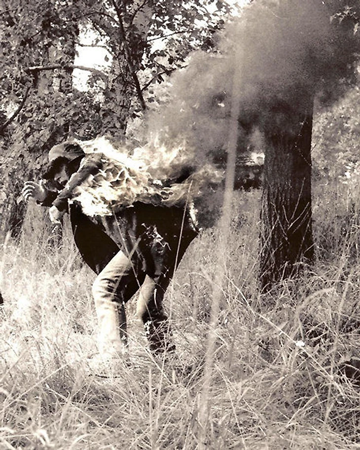 Горение вообще не предполагало особых познаний. Была так называемая бенина смесь из масла, бензина и клея «Момент». Клей «Момент» располагался на верхних частях одежды ближе к лицу, потому что там не такое жаркое пламя, а бензином и маслом пропитывался игровой костюм.