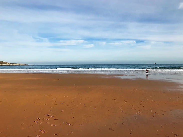 Рианчо останавливается на смотровой площадке. Впереди – гора с зелеными лужайками и гольфистами. Под нами – волнующееся море, стерильный от камней и водорослей кофейный песок и ведущие к нему каменные лестницы. Рианчо рассказывает, что на летних сборах игроки «Расинга» приезжали сюда: бегали по песку, делали упражнения, плавали, чертили футбольную разметку и играли. Правда, на следующий день ничего не оставалось. Пляжи в Кантабрии очень нестабильные – ежедневно гуляют на 200 метров, то углубляясь в море, то возвращаясь обратно.