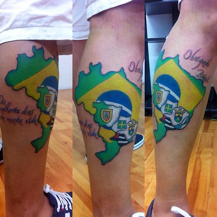 Ну и у меня традиция – отражать на коже главные события в жизни. Теперь их два – поездки на чемпионат мира в Бразилию и Россию. У меня уже есть тату на голени с картой Бразилии.