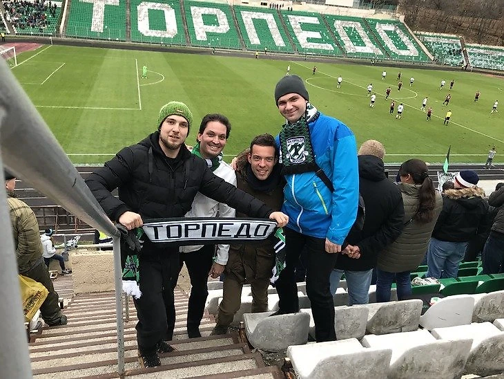 Футбол был не самый интересный и качественный, но фанаты «Торпедо» здорово зажигали, пели, прыгали, размахивали флагами. Я даже удивился, что при такой поддержке они играют в третьем дивизионе.