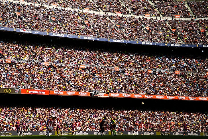 • «Камп Ноу» часто молчит и шикает на эмоциональных болельщиков, а за абонементом туда люди стоят в очереди по много лет;