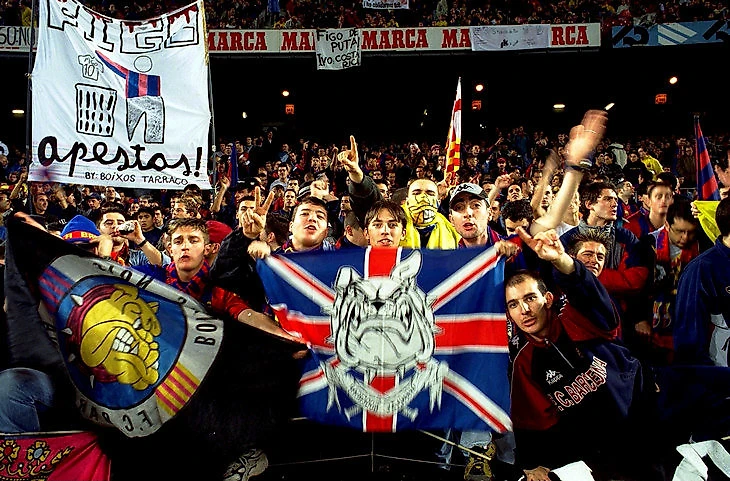 (Это парни из Boixos Nois кинули в Луиша Фигу свиной головой, они же первыми среди испанских фанатов использовали в драках холодное оружие, арматуру и цепи – Sports.ru).