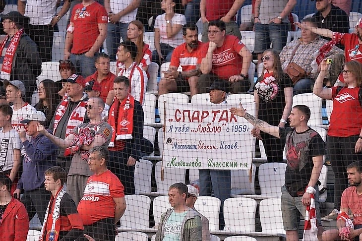 Весь сезон «Спартак» был окружен конфликтами и злобой. В последнем туре он проиграл «Оренбургу» (0:2) и совсем угрюмо упал на пятое место, но рядом неожиданно сверкнула добрая история. После матча в соцсетях выскочила фотография пожилого мужчины, который стоял на трибуне и крепко держал плакат с надписью «Спартак», я люблю тебя с 1959 года». Мы не могли пройти мимо и нашли болельщика, чтобы познакомиться и рассказать его историю.