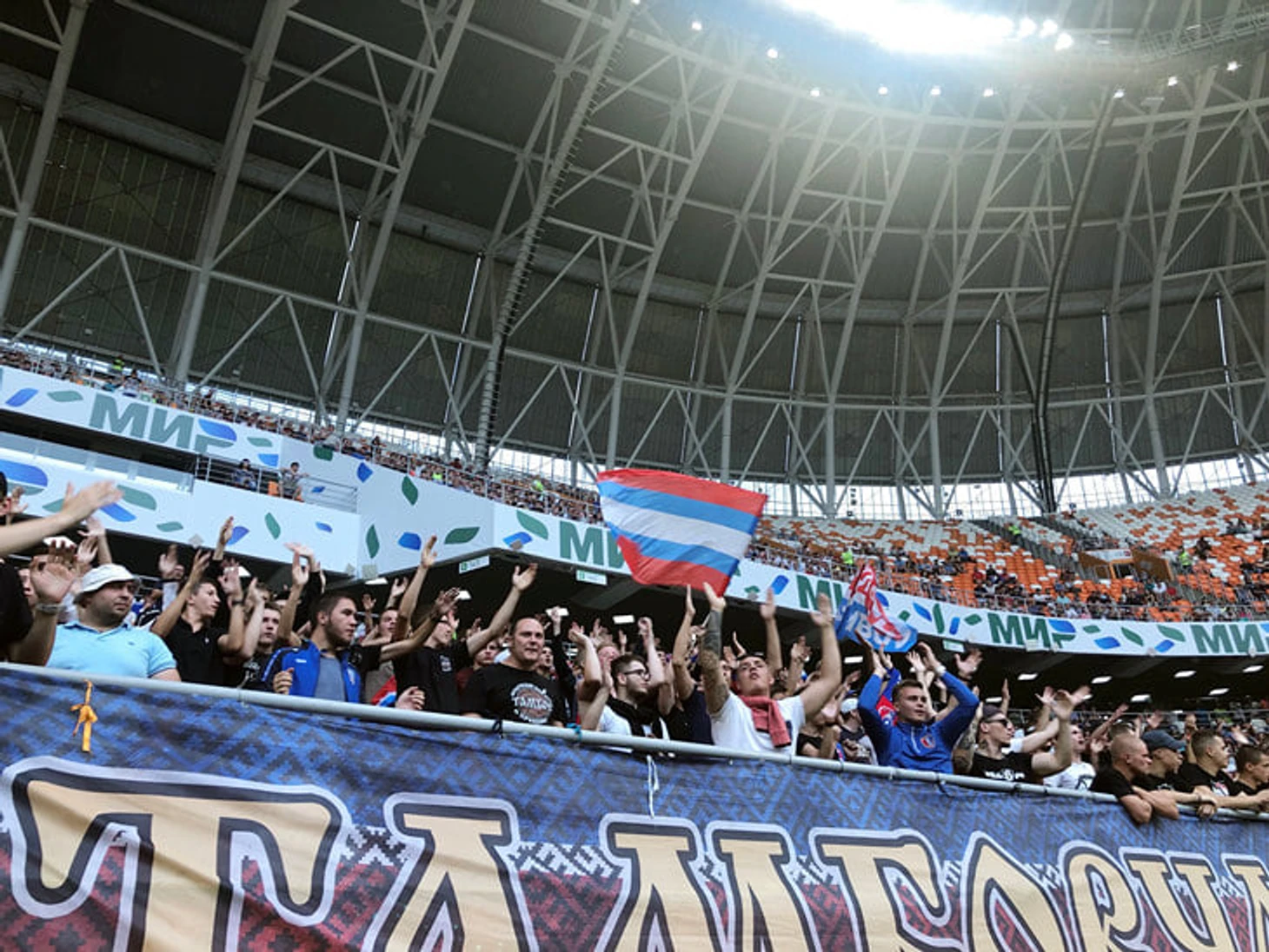 Плюс подъехала поддержка из самого Тамбова. Четыре автобуса, 400 рублей за трансфер туда-обратно – так заполнился небольшой хозяйский сектор, появились люди в атрибутике, с красно-синими щеками и флагами с Тамбовским волком. Даже Григорян признался, что не стоило беспокоиться за шум.