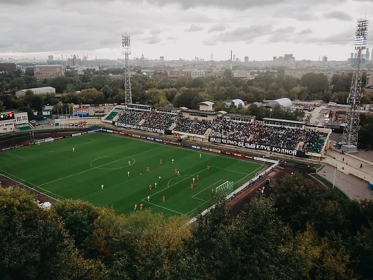 Серо-зеленая Москва с прорвавшимся закатом. Стадион имени Эдуарда Стрельцова. Длинная растяжка «В ФНЛ ништяк». Семь человек сидят на крыше девятиэтажки и смотрят матч «Торпедо» – «Мордовия» (2:2). Впереди – прожекторы, прутья Шуховской башни и холодные пейзажи летнего города.