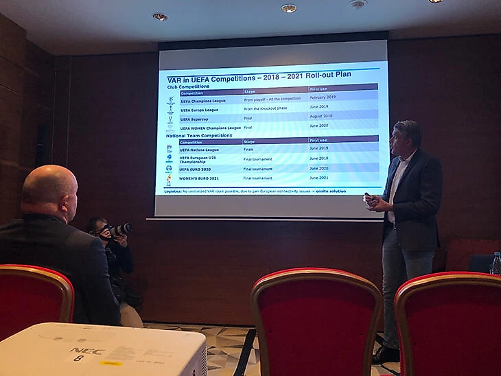 «Обратного пути нет, – начал Розетти. – ВАР проникает в футбол, я начал с его внедрения в Серии А, а теперь – по всей Европе». 15 стран, включая Россию, Израиль, Турцию, Польшу и Грецию, уже используют ВАР. 8 стран – готовятся к внедрению. 15 – подумывают. По задумке УЕФА систему видеоповторов вводят не для арбитров, а для футбола.