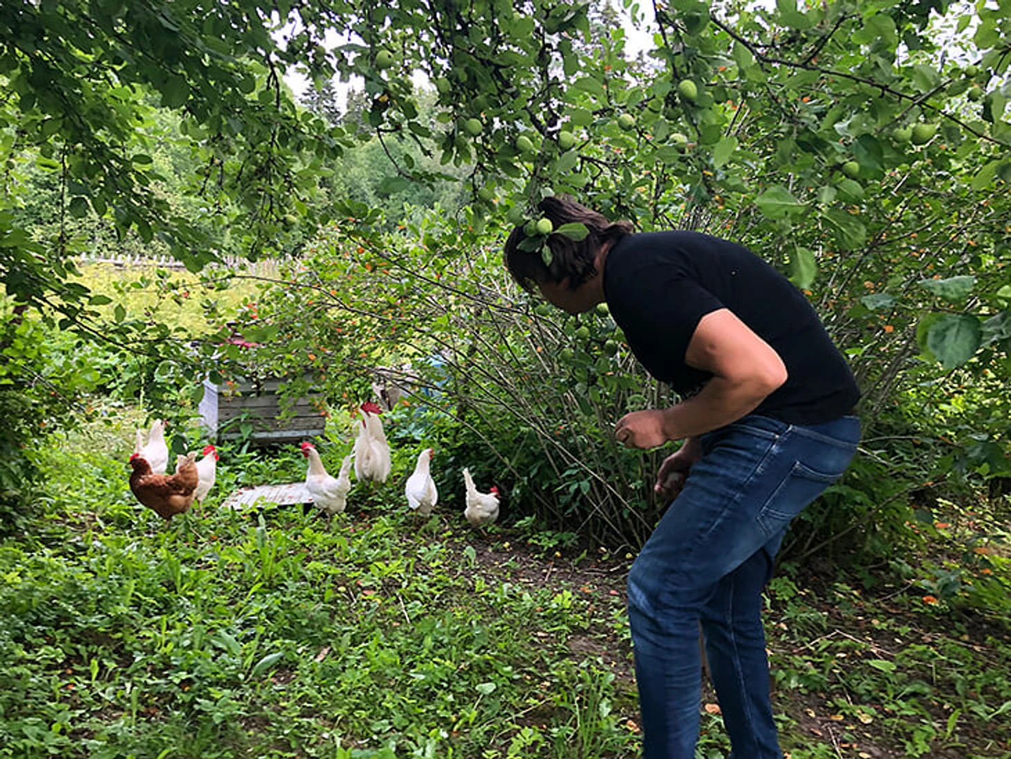 Из животных остались только куры, но выращивать меньше овощей и ягод Радченко не стали. Все на месте: земля дает чеснок, петрушку, укроп, морковь, помидоры, огурцы, перцы и лук, курочки – яйца, а пчелы – мед.