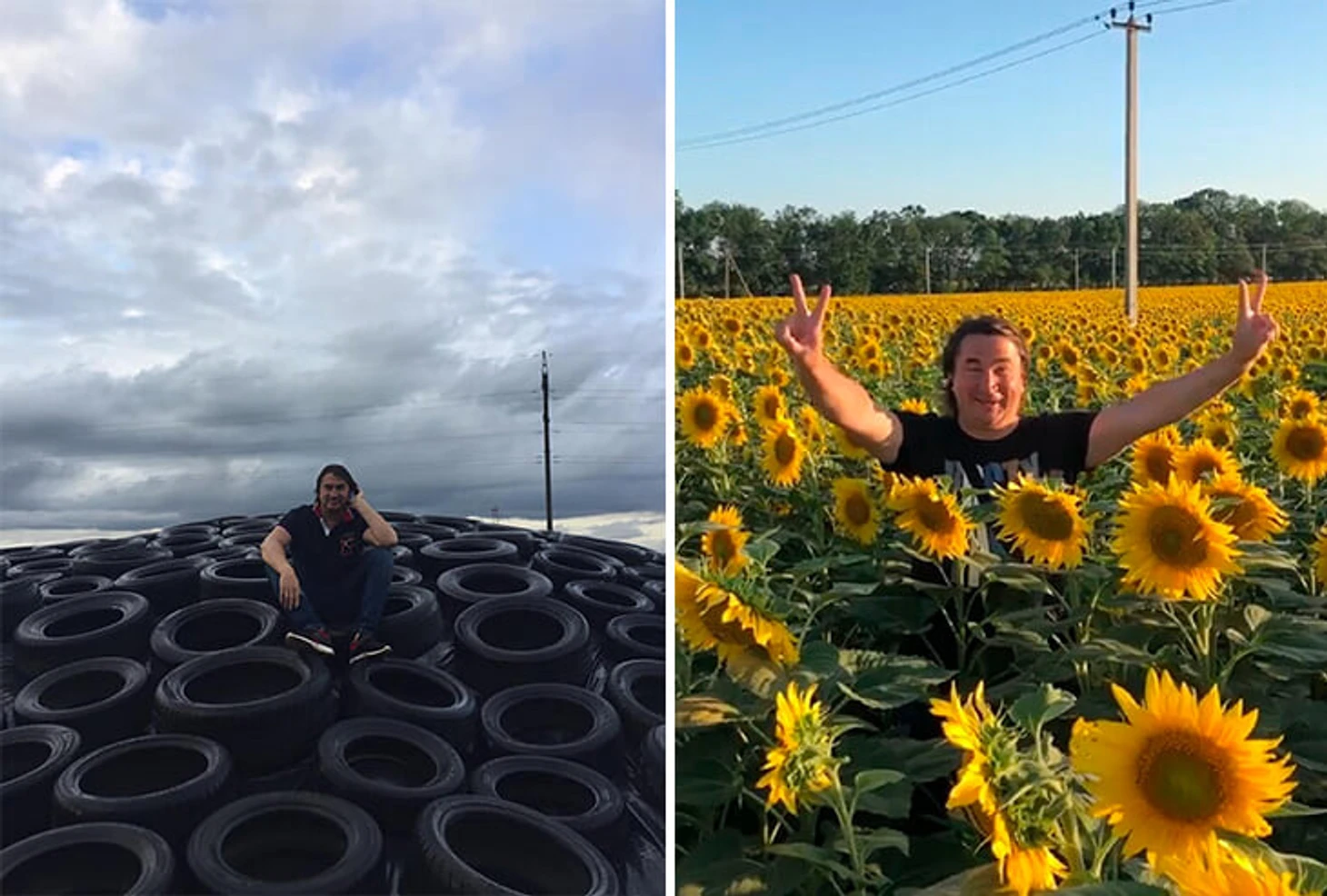 Любовью к родному и натуральному наполнен инстаграм Радченко: валяется на стоге сена, купается в подсолнухах, сажает картошку в голубом спортивном костюме и объясняет, как в нашем климате приживается груша. А еще восхищается русской природой и причудами путешествий: весь черный купается в лечебной грязи в Анапе, держит в руках огромную медузу и там же катается на верблюде.