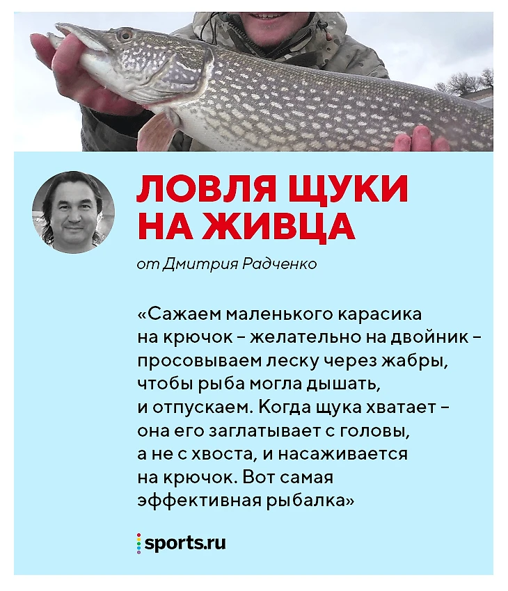 Рыбалку, как и охоту, Радченко полюбил с детства: в папином доме в Беларуси не вылезал с озера и ловил карасей, в Петербурге с мальчишками по весне ходили на заводи реки Дудергофка, где тогда водилось много щуки («Это проточная речка, через два дня придешь, там снова будет стоять щука и охотиться»), а зимой ездил с отцом на Ладожское озеро за корюшкой – бывало, лед уже хлюпал, но рыбачили все равно. Там же попробовал уху, которую вспоминает до сих пор: «Незабываемый вкус ухи из свежепойманной рыбы в котелке и в воде из того же озера, где ты ее поймал – получше любого деликатеса. Я вообще всеядный, пробовал медвежатину, дикого кабана и лося, но это блюдо запомнил лучше всего».
