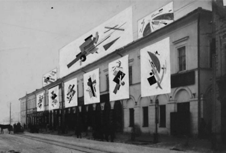 В 20-е годы прошлого века Витебск стал городом будущего – к праздникам местные художники из созданного Малевичем объединения УНОВИС (учредители нового искусства) разрисовывали трамваи, магазины, кофейни, библиотеки, фасады зданий и даже трибуны для ораторов. Творили в стиле супрематизма, когда художники переходили к простым формам и вместо пейзажей и портретов изображали цветные круги и квадраты. «Черный квадрат» – это начало супрематизма, «нуль форм», как говорил о картине Малевич.