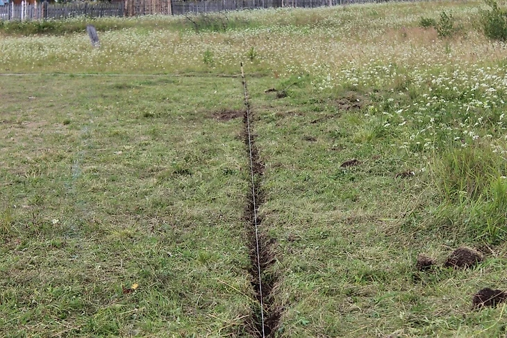 Агронома у нас нет, все делали своими руками: вспахивали землю трактором, ровняли поле культиватором (он сзади цепляется к трактору), вручную укатывали поле бочками, за 3500 рублей купили семь кило семян газонной травы, посеяли. Фух!