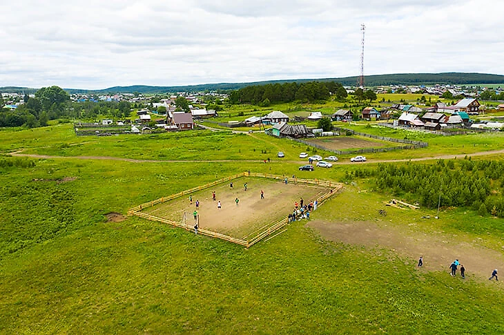 Жители уральского села Полдневая (их 1400 человек) 13 лет мечтали о своем стадионе: с газоном и сеткой; чтобы его не топтали коровы, чтобы ворота не использовали для буксировки машин; чтобы там проходили школьные турниры, а у малышей было спортивное детство. Обычная футбольная мечта для глубинки, где нет полей и редко появляются настоящие футболисты.
