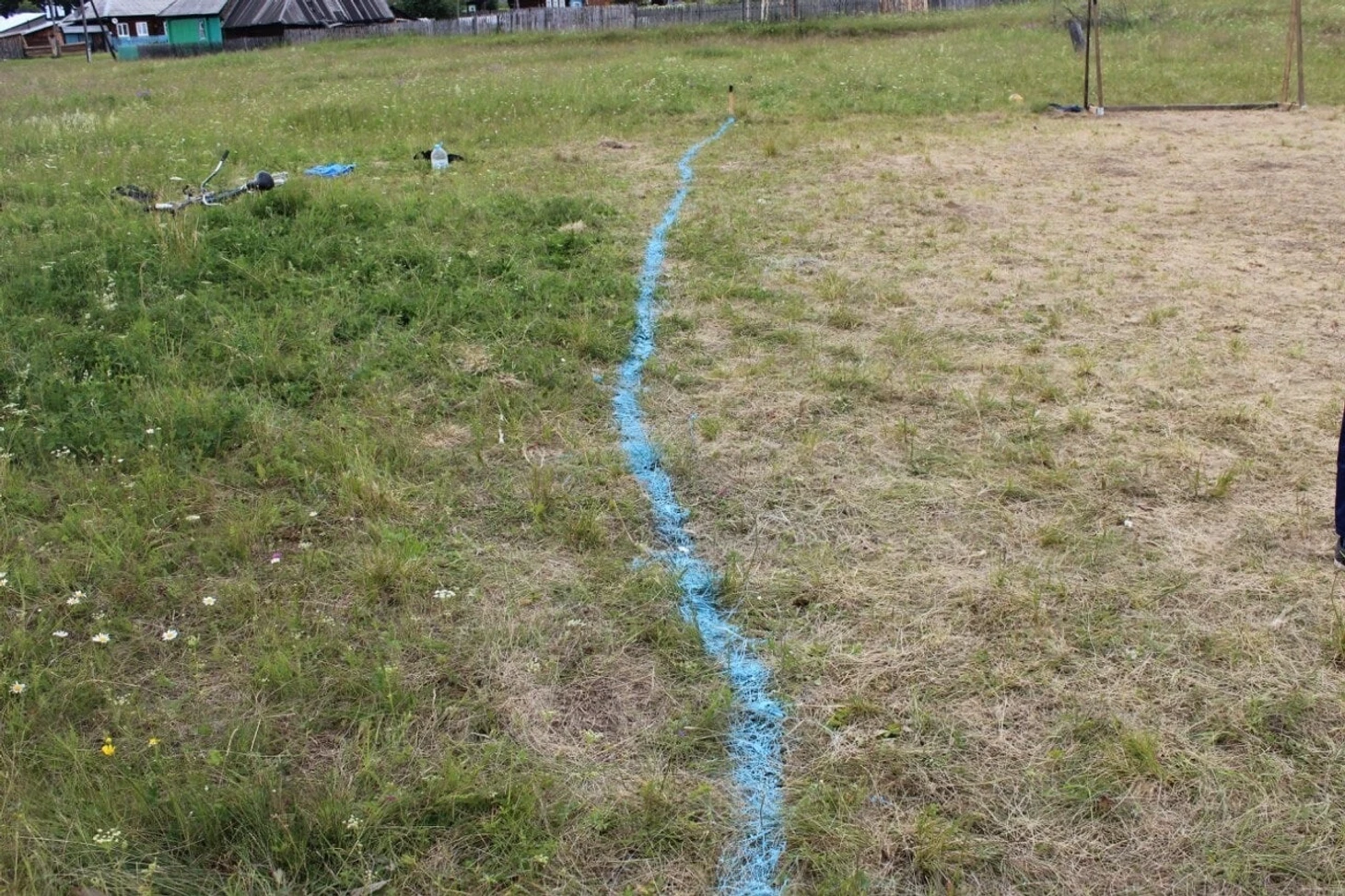 С соседом Даней скосили траву бензиновым триммером, голубой краской нарисовали ауты: делали на глаз, получилось – как получилось, хаха.