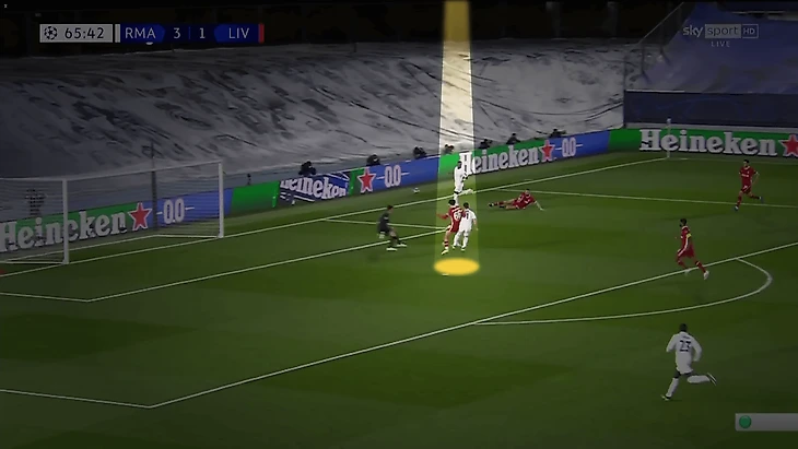Хотя, как мы видим из их расположения, они не все бежали с той интенсивностью, которую привыкли видеть болельщики «Ливерпуля». Винисиус находится у ворот, и Менди может отыграть мяч в сторону форварда, учитывая тот факт, что Кейта выдернулся во фланг и освободил пространство.