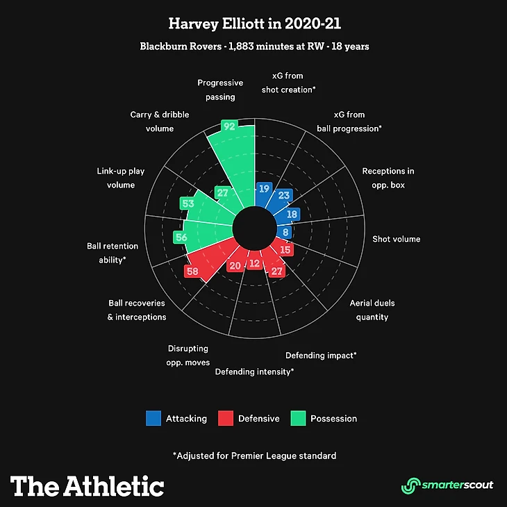 The Athletic ранее задокументировал талант Эллиота и почему «Блэкберн» является идеальным местом для его развития, а также продолжающуюся финансовую борьбу между «Ливерпулем» и его бывшим клубом «Фулхэм» за его трансфер. Но юноша, ставший самым молодым игроком Премьер-лиги, выйдя на поле за «Фулхэм» в мае 2019 года, заслуживает аналитической разбивки своего игрового профиля, учитывая, насколько он преуспевает в Чемпионшипе.