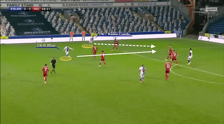 Эллиот обладает способностью находить свободные места, часто глубоко опускаясь, чтобы принять мяч и посмотреть на забегающих игроков впереди него — обычно в виде Адама Армстронга, Бена Бреретона или Сэма Галлахера. Один из замечательных примеров этого случился во время поездки «Блэкберна» в Престон в ноябре. Подросток опускается так глубоко, на свою половину поля, чтобы принять мяч в полузащите. Конечно, на него оказывается мало давления при владении мячом, но на первый взгляд он не представляет огромной угрозы для соперника.
