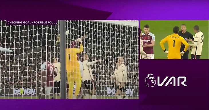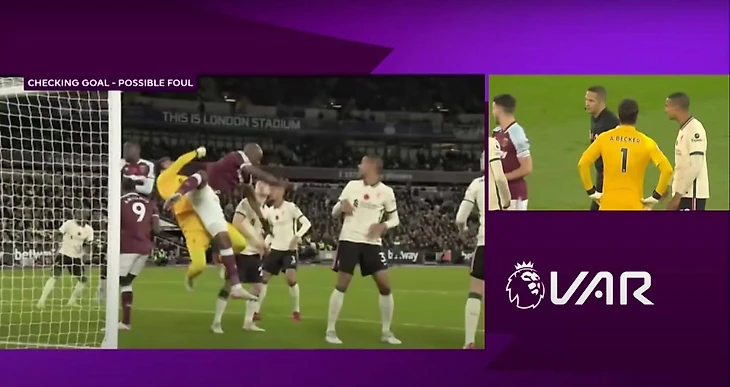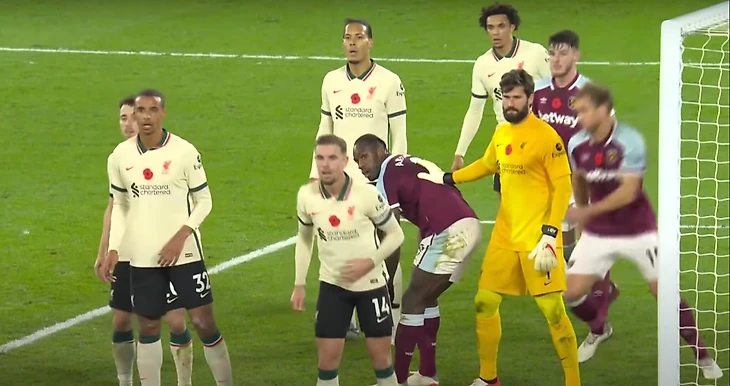 Не забывайте, что если бы Алиссон толкнул Антонио или Огбонну в этой ситуации или перепрыгнул через них и вынес мяч, то был бы назначен пенальти. Конечно, у вратаря есть преимущество в использовании своих рук, но правило/защита вратаря существует не просто так, и если соперник отнимает это преимущество или мешает конечности вратаря добраться до мяча, то нетрудно понять, почему «Ливерпуль» посчитал, что тут должен был быть фол.