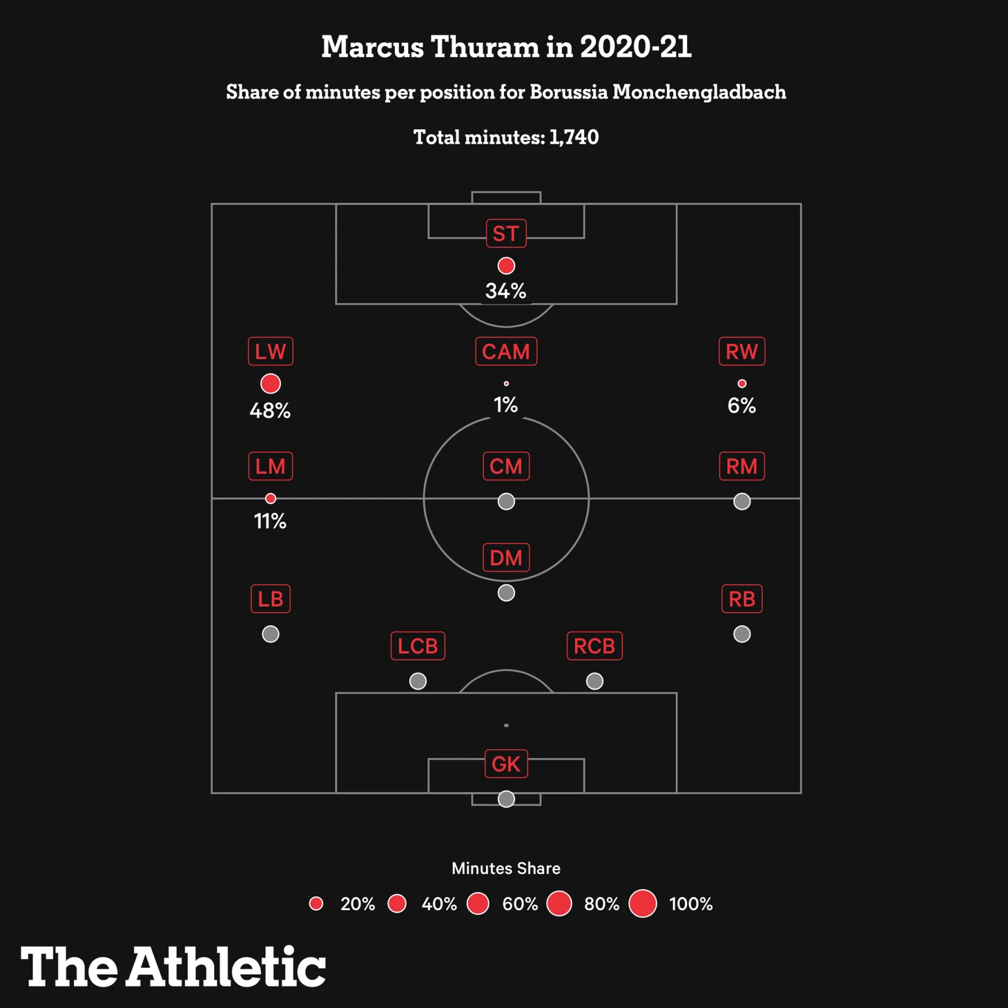Нападающий менхенгладбахской «Боруссии» Тюрам — самый универсальный из трех игроков, на которых мы фокусируемся.