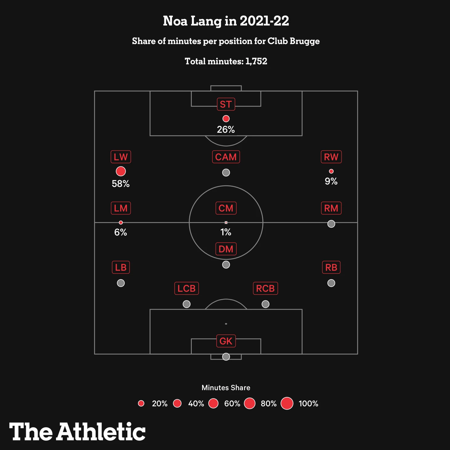 Как и Тюрам, Ланг играл по всей линии атаки, но большая часть его действий была произведена с левого фланга. Правоногий нападающий прошел через молодежные команды «Аякса» и сделал хет-трик в своем первом старте в лиге за амстердамский клуб в декабре 2019 года. Дальше последовали периоды аренды внутри страны в «Твенте» и за границей в «Брюгге», прежде чем последний клуб сделал их соглашение постоянным.
