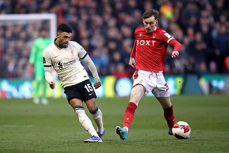 Окслейд-Чемберлен не сумел воспользоваться своим шансом на «Сити Граунд» (Фото: Айзек Паркин/PA Images via Getty Images)