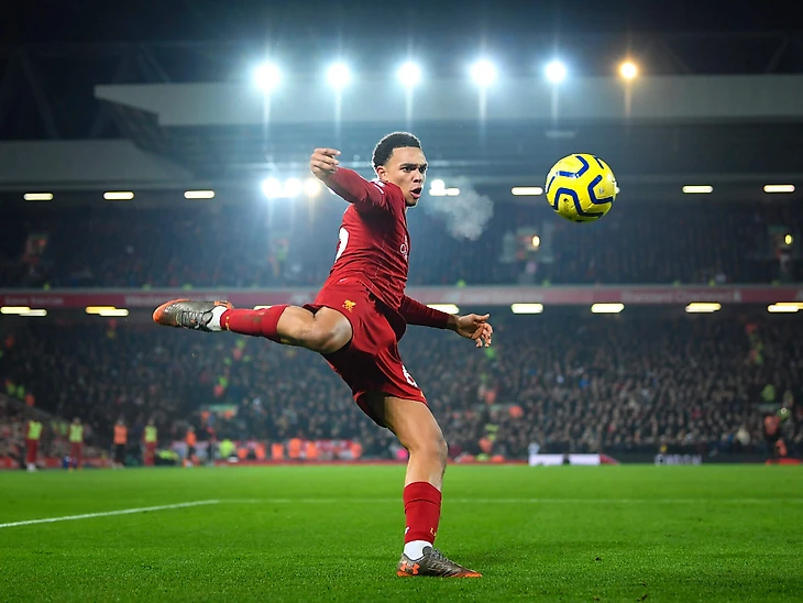 Бо́льшая часть игры «Ливерпуля» проходит через Александер-Арнолда (только у Жоау Канселу было больше касаний мяча в Премьер-лиге в этом сезоне), что теперь трудно думать о нем как о правом защитнике, особенно когда он способен переключать игру и исполнять дальние передачи, или пасы вразрез так легко и с любой ноги.