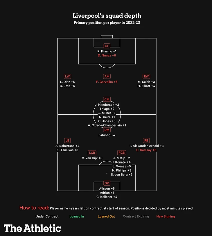 Подписание контракта с Фабиу Карвалью — еще один признак того, что «Ливерпуль» сокращает средний возраст команды и строит планы на будущее. Карвалью, который перешел из «Фулхэма» в мае и которому в конце этого месяца исполнится 20 лет, является атакующим полузащитником, которому еще несколько лет до достижения пика своей карьеры, но он уже хорошо продвинулся по сравнению с другими игроками его возраста.