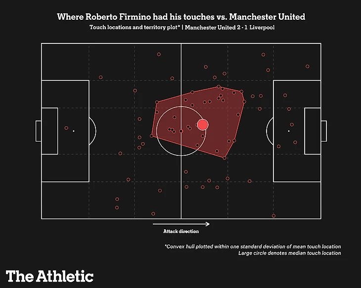Карта касаний Роберто Фирмино в матче против «Манчестер Юнайтед»