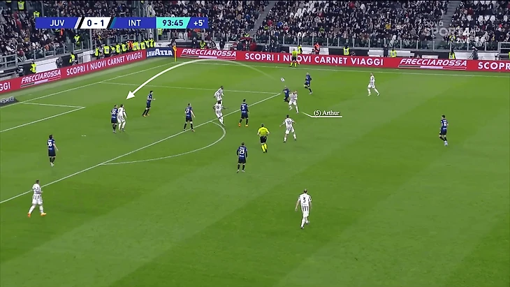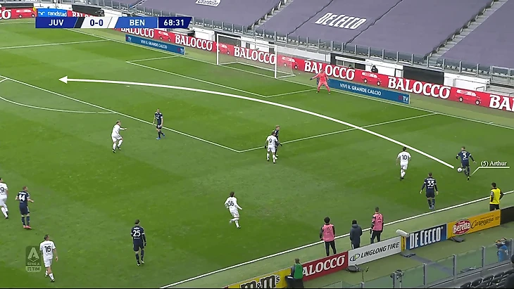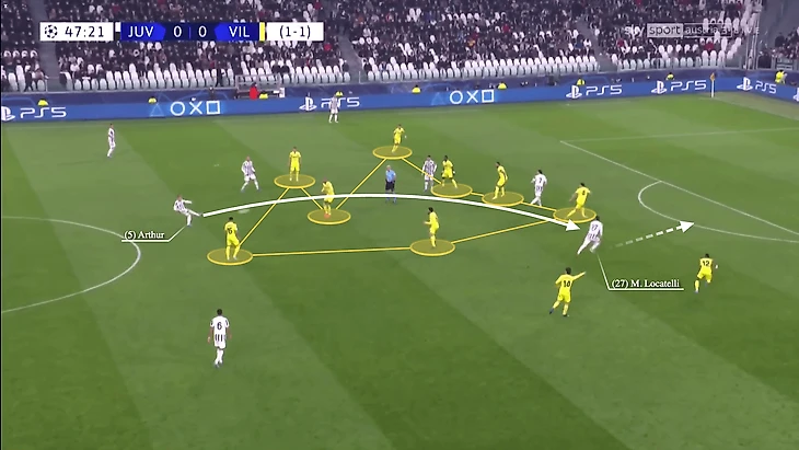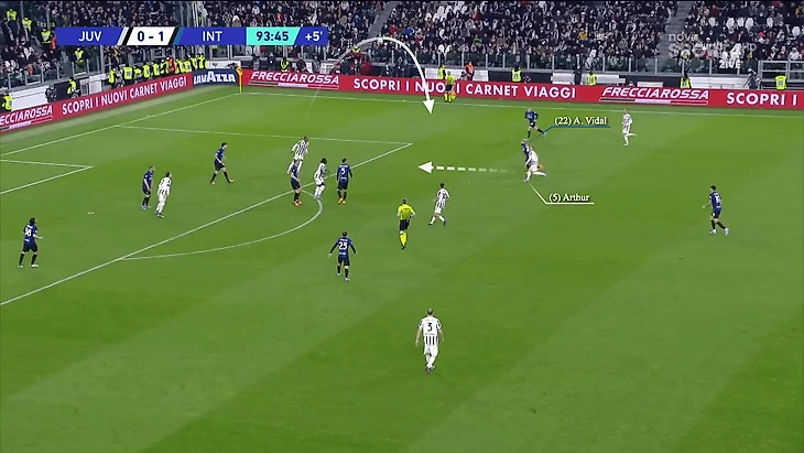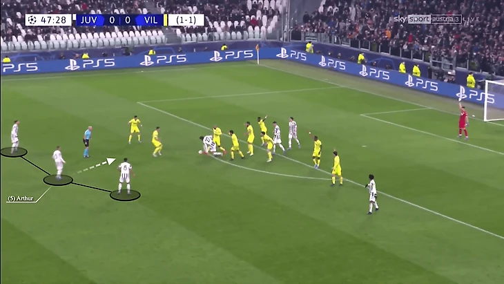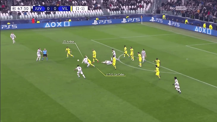 В недавнем матче за «Ювентус» против «Вильярреала» в 1/8 финала Лиги чемпионов прошлого сезона, в ответном матче они проигрывали со счетом 0:3, имея ограниченные возможности, Артур отдал пас аккурат через переполненную зону поля.