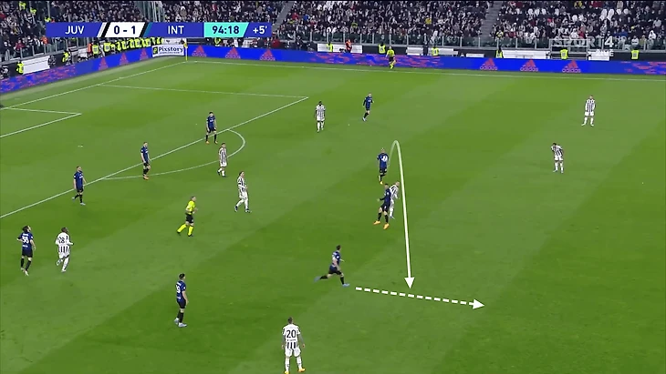 Когда мяч отскочил вверх, он снова потерял мяч в воздухе, и «Интер» вырвался вперед на последней минуте, чтобы ослабить запоздалое давление «Ювентуса».
