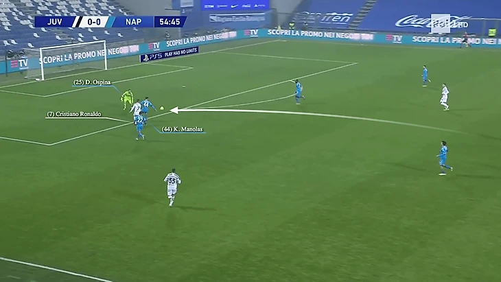 Имея ограниченные возможности и зафиксировав забег Роналду, бразилец отдал на нападающего пас, который едва не вывел того один на один против Давида Оспины.