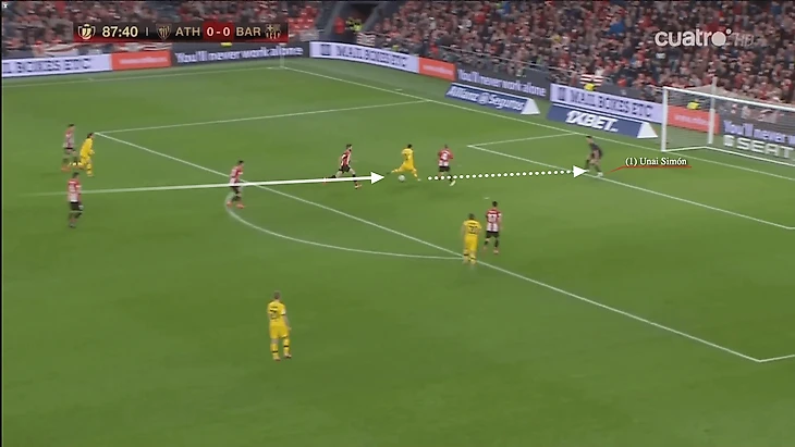 Несмотря на то, что удар аргентинца пришелся прямо в Унаи Симона, подобный пас понравился бы такому игроку, как Дарвин Нуньес.