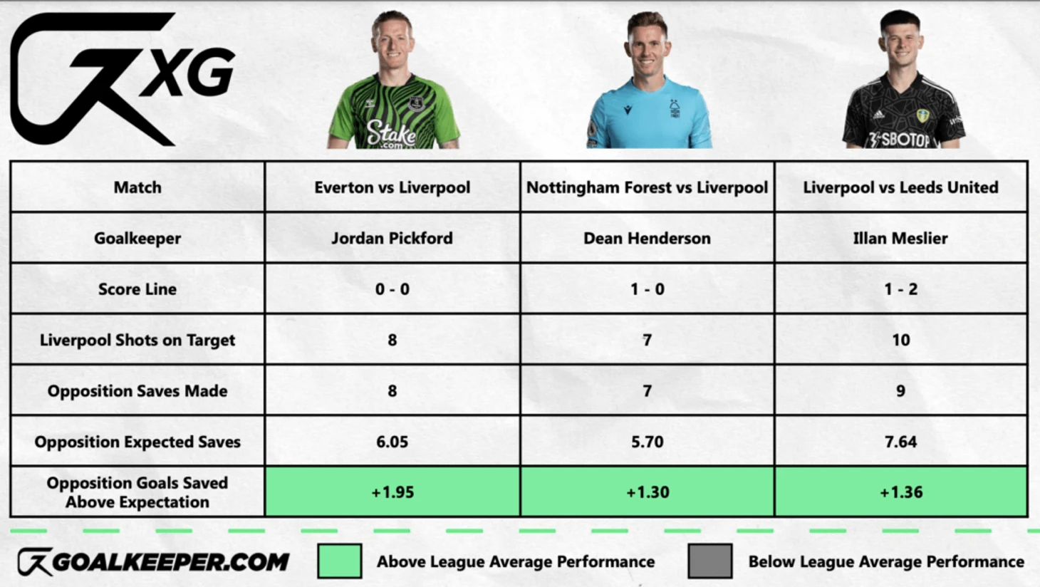 Четыре гола, которые, по данным Харрисона, должен был забить «Ливерпуль», потенциально можно отнести к трем матчам — против «Эвертона», «Ноттингем Форест» и «Лидс Юнайтед», когда вратари были лучшими в матче.