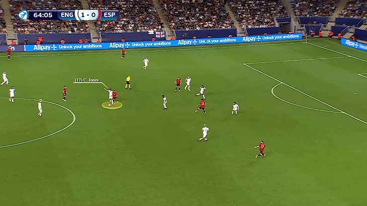 Выступления Джонса на протяжении всего турнира не были яркими, но он был ключом к тому, чтобы Англия контролировала матчи своим уверенным касанием, расширяя диапазон передач и агрессивно работая без мяча — все это делалось в своем темпе, когда именно он задавал темп своей команде.