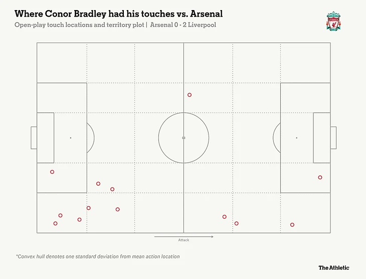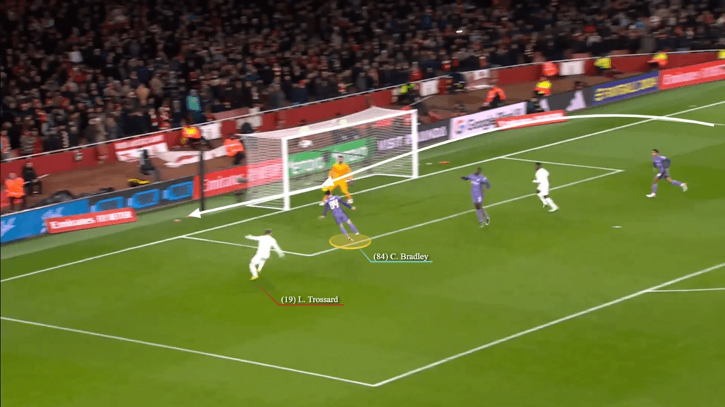 В воскресенье, когда игра шла на равных, а «Арсенал» представлял более стабильную угрозу с обоих флангов, выбор Брэдли был авантюрой со стороны Клоппа. Так можно сказать обо всех заменах, но в такой напряженной игре, как эта, попросить молодого игрока войти в игру против Габриэля Мартинелли, который был самым свежим нападающим хозяев, было серьезным вызовом.