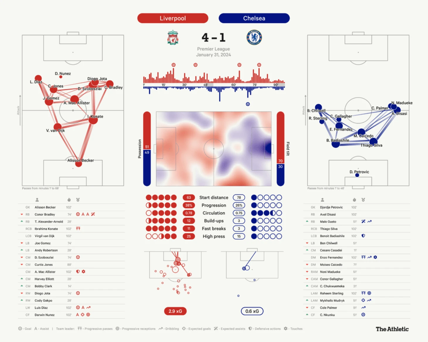 Но это еще не все. Брэдли выполнил 25 из 31 паса (81%), в том числе четыре ключевых паса, и сделал три отбора. Для сравнения, вся команда «Челси», которая была полностью переиграна и деклассирована, сделала два ключевых паса за всю игру.