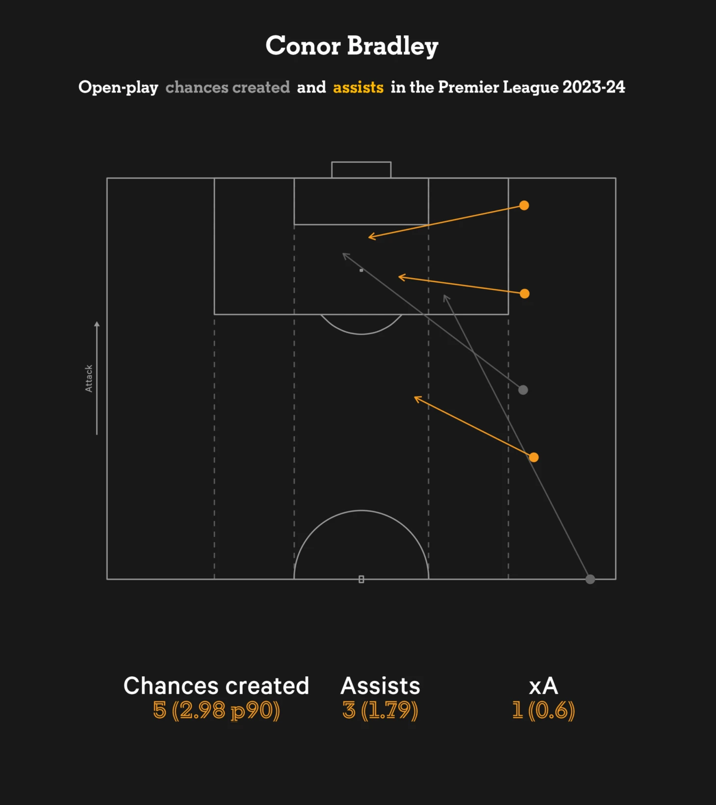 Брэдли — это не вспышка на сковородке. С тех пор, как Александер-Арнолд повредил колено в матче Кубка Англии с «Арсеналом» в начале января, выпускник академии сделал пять голевых передач и забил гол в пяти стартовых матчах подряд во всех соревнованиях.