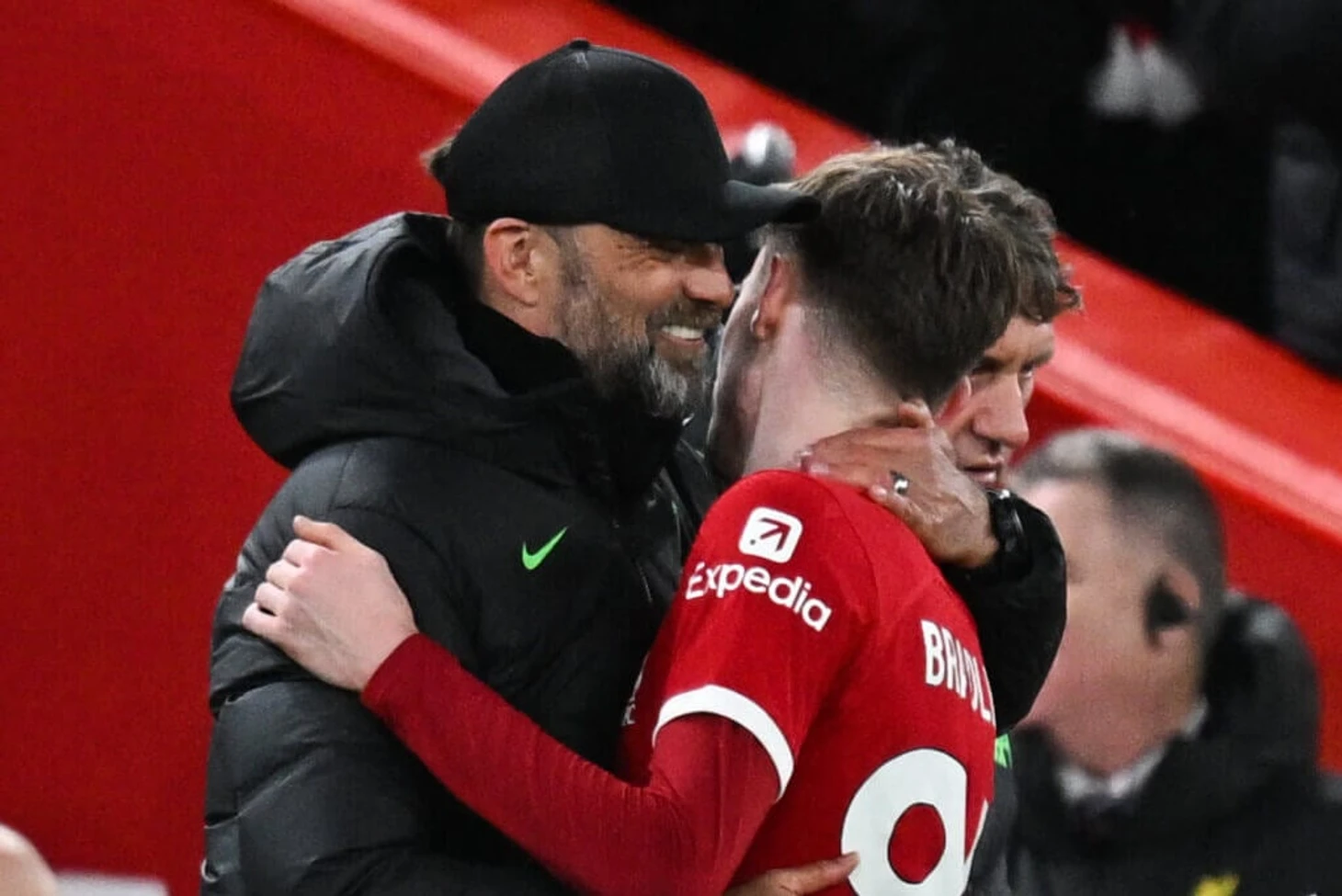 Когда сияющий юноша направился к бровке, Юрген Клопп обнял его, а помощник главного тренера Пеп Лейндерс игриво толкнул его.