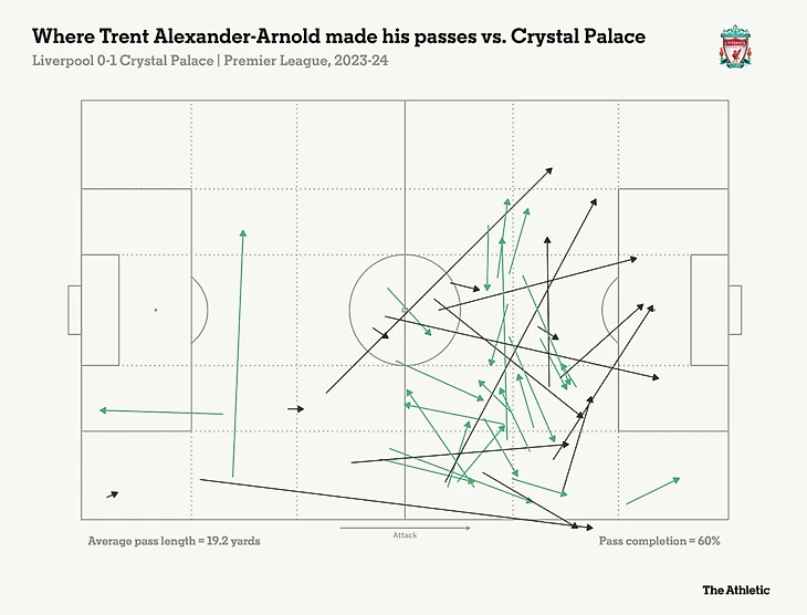 Куда Трент Александер-Арнолд отдавал пасы в матче против «Кристал Пэлас»