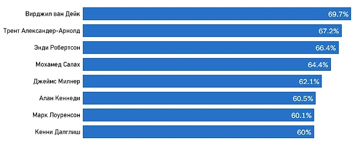 У Вирджила ван Дейка лучший процент побед среди всех игроков «Ливерпуля», сыгравших более 300 матчей