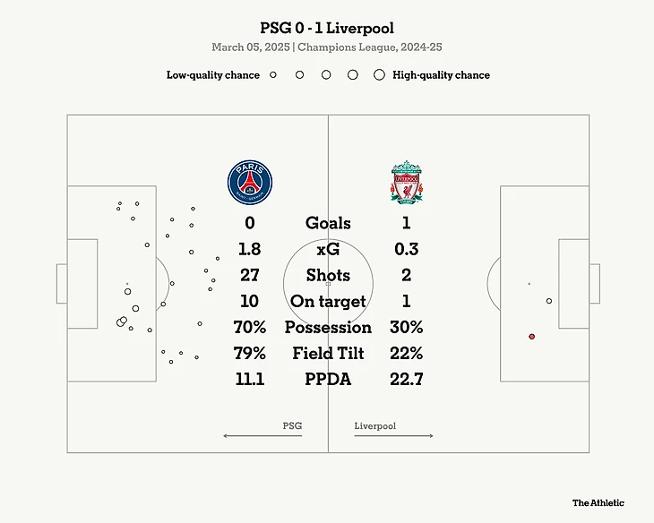 Если Арне Слот надеялся увидеть своих игроков энергичными и свежими после того, как они не играли в выходные после вылета из третьего раунда Кубка Англии, то «Ливерпуль» не смог соответствовать интенсивности и агрессии команды ПСЖ, которая была первой во всем.