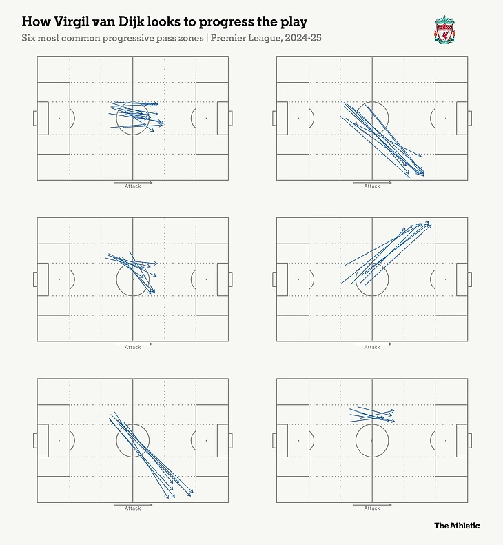 При просмотре прогрессивных пасов ван Дейка сразу же бросаются в глаза те пронзительные пасы на Гравенберха через центр поля. Общий процент точности передач составляет 92%, что является самым высоким показателем за сезон в футболке «Ливерпуля», и вы можете понять, почему он удостоился особой похвалы от своего менеджера.